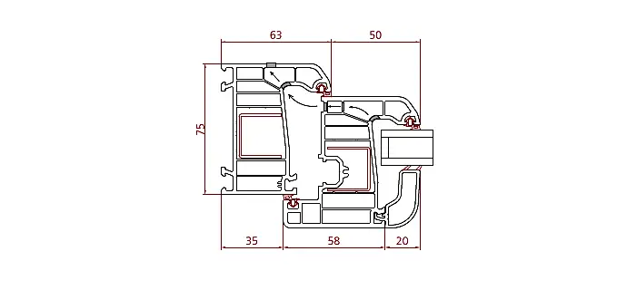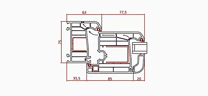 - 6 odacıklı kasa ve kanat profilleri ile mükemmel ısı yalıtımı sağlar.